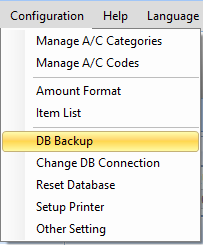1. From the Configuration Menu , choose DB Backup Submenu.