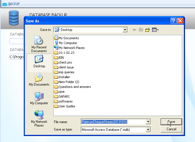 3. Once Selected the locations of to 'Backup' and 'To be Backup' , Select the Backup button to complete the procedure. Backup files created will automatically be appended a backup date so that you will be able to know when the last backup was done.