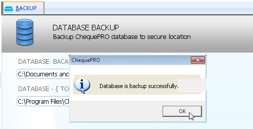 4. Click OK for the confirmation message as 'Database is backup successfully'