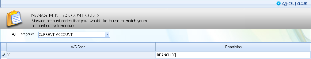 MANAGE A/C CODE