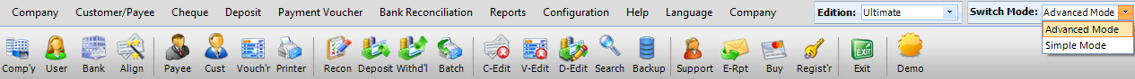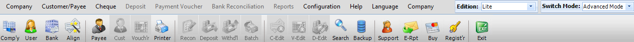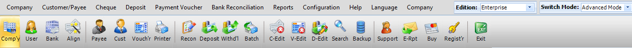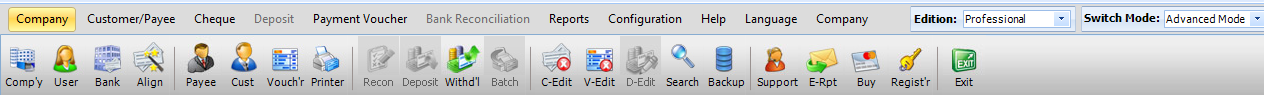 | Management Reports: Instantly check for a Cheque / Check details, deposit details, payment voucher details or any other information. These information's are strategically stored in database so that a simple search can generate the required information instantly. | Admin Management: Provides a higher level of control. Under Admin Management companies, users, bank accounts can be created as well as management of Cheque / Check's, deposits and bank balance is available. | |||